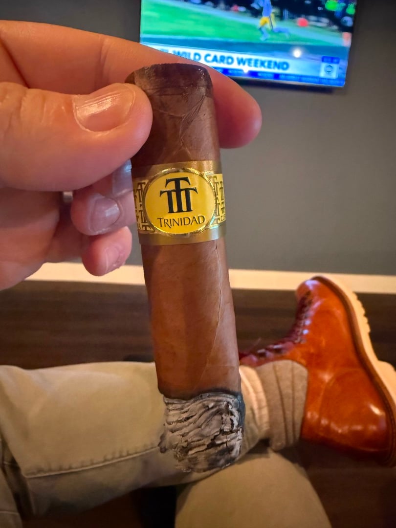 MERRY CHRISTMAS!!!!! … or so I would’ve said if I smoked this when @Çnote did. Sorry everyone, I’m far behind on my TX Duo reviews. Lit this up yesterday after enjoying an N2 Piramide. Slightly distracted by the Rams and Panthers, but here goes: Cold draw gives me coffee, a little bit of dried fruit. Sandalwood too, maybe. Light-up is full of coffee and crème notes, some caramel, and mild leather. Going on, the first half is dense coffee and earth, remarkably straight burn line (sorry, in the middle of conversations and I didn’t take pics), and a great mouthfeel. Something like dark apricot on the finish. Around the midpoint, I get some prune notes on the tip of the tongue and I’m in heaven. Can’t remember having this exact stick before, but now I want more. Strength kicks up in the second half, but this is far less rich than the previous sector. Not so much fruity sweetness, but some leather and earth. I can’t imagine Cody enjoyed this last half very much, but who knows? The end gets a slight bit bitter, but the core is still nice coffee and crème, maybe a little dark caramel in the nose. Not digging the last half so much. I’d give this an 86, but definitely something worth looking for to put down and bury. Cheers!