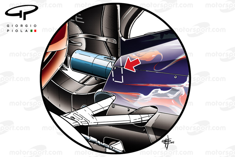 3. The Vulcan-finger style front brake duct is retained by McLaren as it clearly sees the benefits it has on shaping the airflow around the tyre. However, like Mercedes did last year, it has tacked another duct on to it.